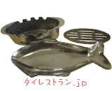 川魚を調理して魚の形をしたお皿に盛り付けます。お皿の下に火をつけて温めます。 |